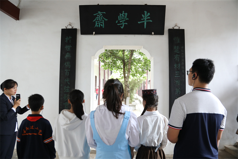 讲解员向“新时代好少年”代表介绍半学斋。周胜武 摄