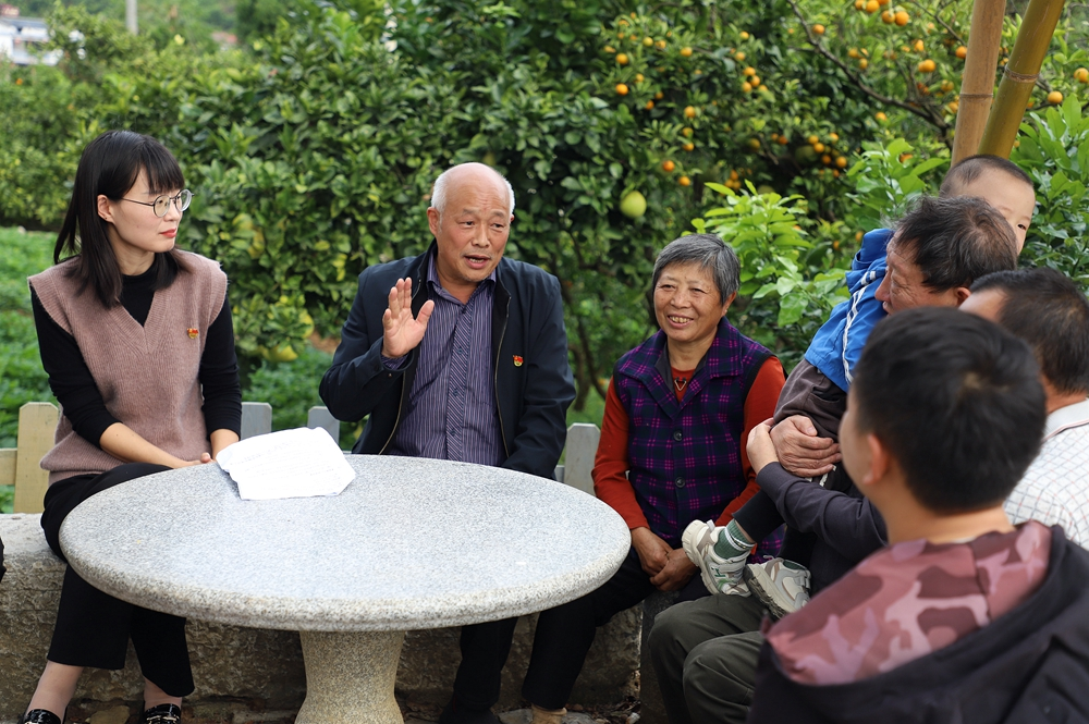 在景阳镇大树垭村,群众在开展乡风文明“微宣讲”。