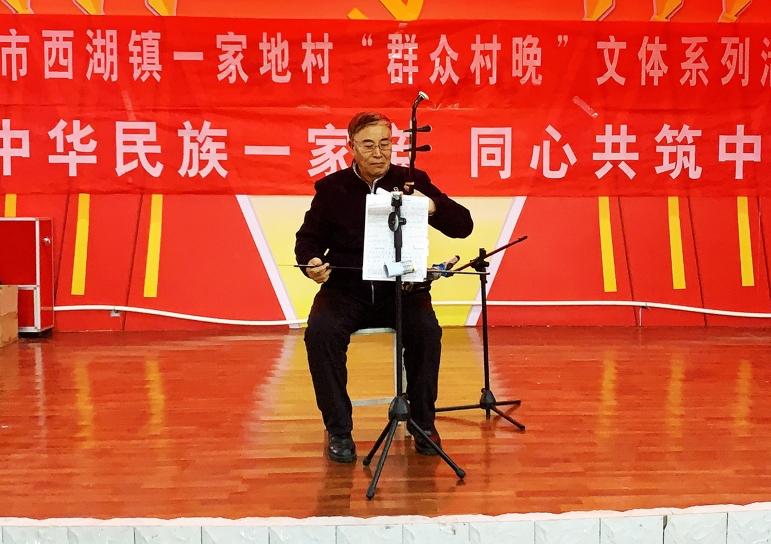 “开门红呀咯红四方,欢欢幸福扑打着你的胸膛……”2024年1月4日,乌苏市哈图布呼镇“群众村晚”正在火热进行中,由本土文化能人、文艺爱好者自编自排自演的传统曲剧、民族舞蹈、乐器演奏、独唱等节目,让台下的观众大呼过瘾。