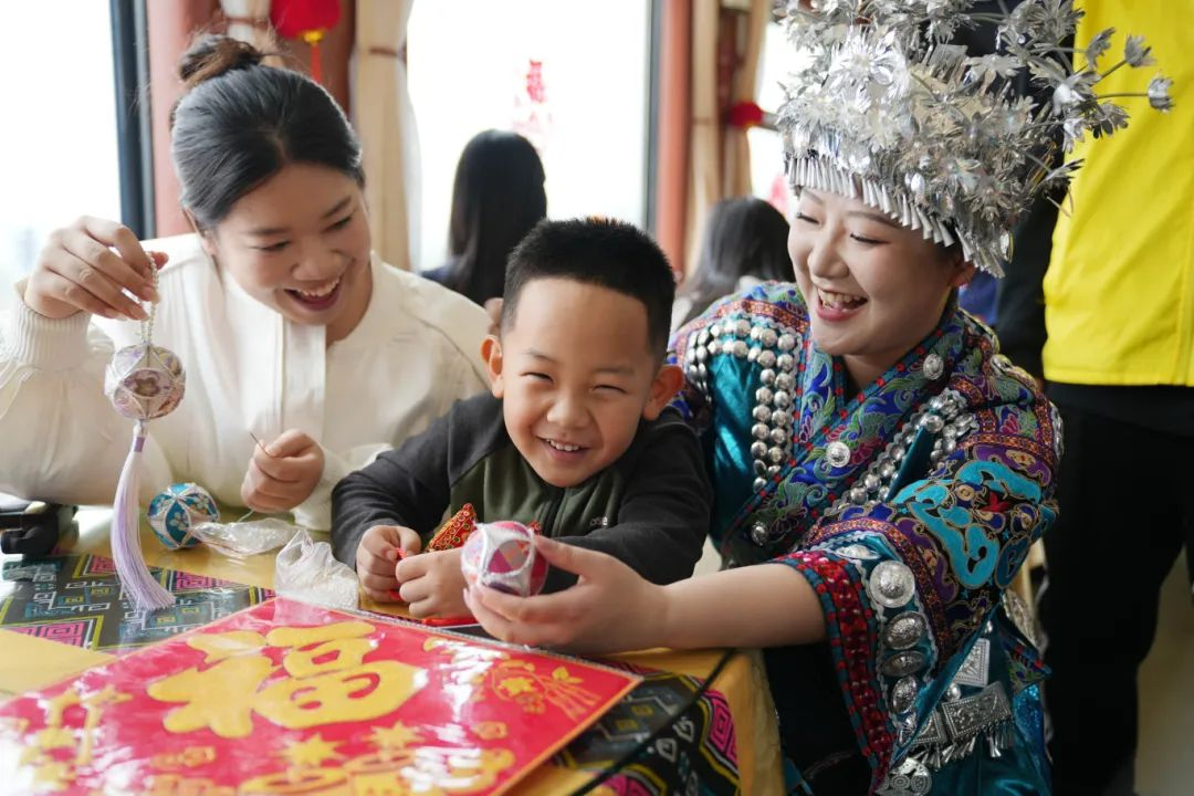 南宁至北京西的Z6次列车在餐车内为来自南宁市和防城港市前往北京研学的学生开展民族团结交流活动,营造浓浓年味,带给学生们别样的乘车体验。