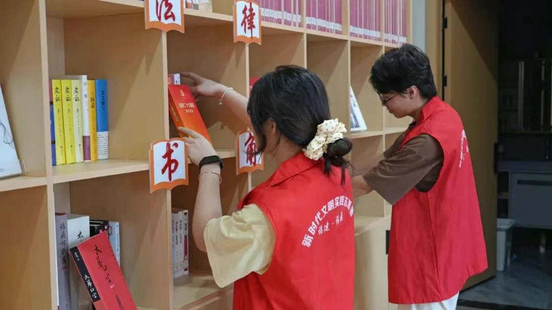 志愿者在福鼎市桐山街道福全社区城市书房参与志愿服务。宁德文明网供图